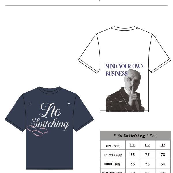 – “ No Snitching “ & “ MYOB “ print
